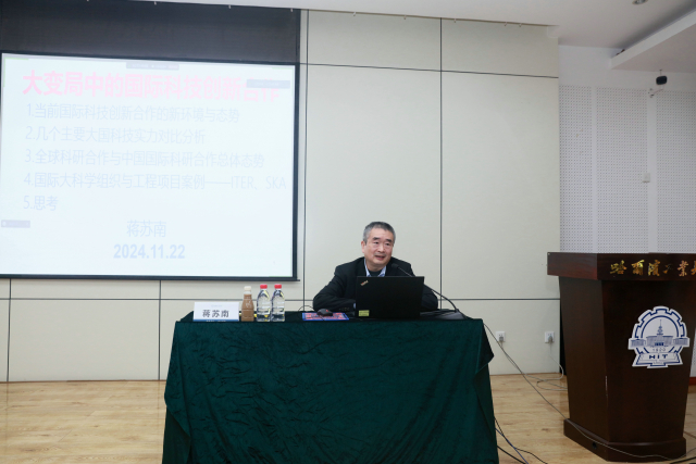 11月22日下午2:30,太阳成tyc234cc在活动中心326举办黑龙江省外国语学会科技话语研究分会学术交流会暨学部“和合论坛”,邀请中国驻英国使馆原党委委员、原公使衔科技参赞蒋苏南先生作主题为“大变局中的国际科技创新合作”讲座。